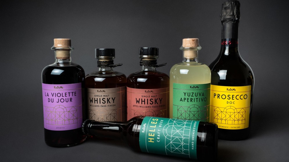 In 2023, KaDeWe asked me to pick up the thread from Studio Chapeaux’ design works for their own line of food products. I am pleased to report that I have successfully introduced a diverse range of products to the store. This includes elegantly packaged bonbons, truffles, crémant, rosé wine, prosecco, gummy bears, honey, olive oil, coffee, gin – with many more exciting additions on the horizon! You can discover these offerings throughout KaDeWe's cherished 6th floor.